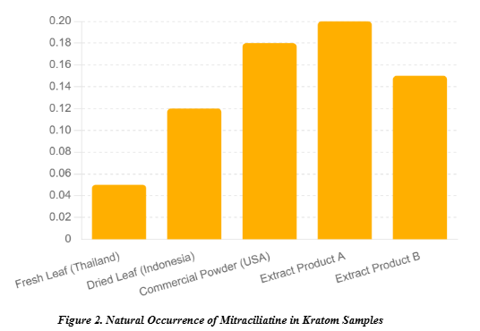 - Natural occurrence and abundance: Report verified concentrations in Mitragyna speciosa leaves and commercial kratom products across different geographic origins and processing methods using peer-reviewed chromatographic data [5].